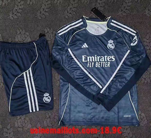 Maillot enfant Real Madrid extérieur manches longues 2025/2026,usine de maillots de foot pas cher en chine,simple et un bon suivi de commande et un livraison rapide,très bon choix pour tout les amoreux de foot.
